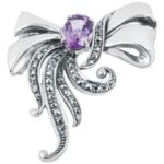 B337 Amethyst Victorian Style Bow Brooch Sterling Silver